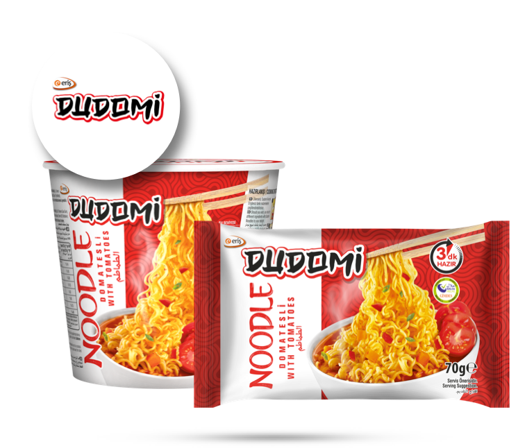 2013 yılına gelindiğinde ERİŞ, ürün portföyüne yepyeni bir ürün ekledi; Türkiye’nin ilk yerli Noodle markası olan NUDO’yu tüketicilerle buluşturdu. Güvenilir ve Helal Gıda kriterleriyle üretimi gerçekleştirilen NUDO, GİMDES Helal Gıda Sertifikasına sahiptir. Noodle ürünlerimizin hiç birinde koruyucu ve renklendirici kullanılmamaktadır. ERİŞ, NUDO için oluşturduğu üretim proseslerine bağlı kalarak 2022 yılında ikinci markası DUDOMİ’yi noodle pazarına sundu. NUDO daha premium bir damak tadına hitap ederken, DUDOMİ özellikle genç noodle severlerin beklentisine uygun olarak birbirinden iddialı ve lezzetli 6 farklı sos seçeneğine sahip.